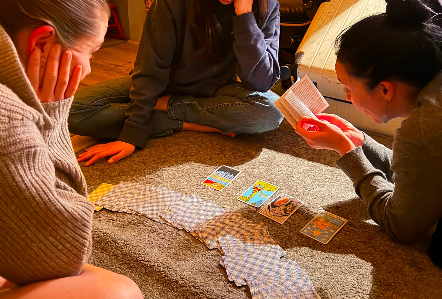 I didn’t know much of anything about tarot cards other than that they’d show up in my life at some point when I needed them to. We each pulled our 3-4 cards over the course of three hours and took turns analyzing and interpreting each others’ stories and symbols. Little did I know you can just make shit up!